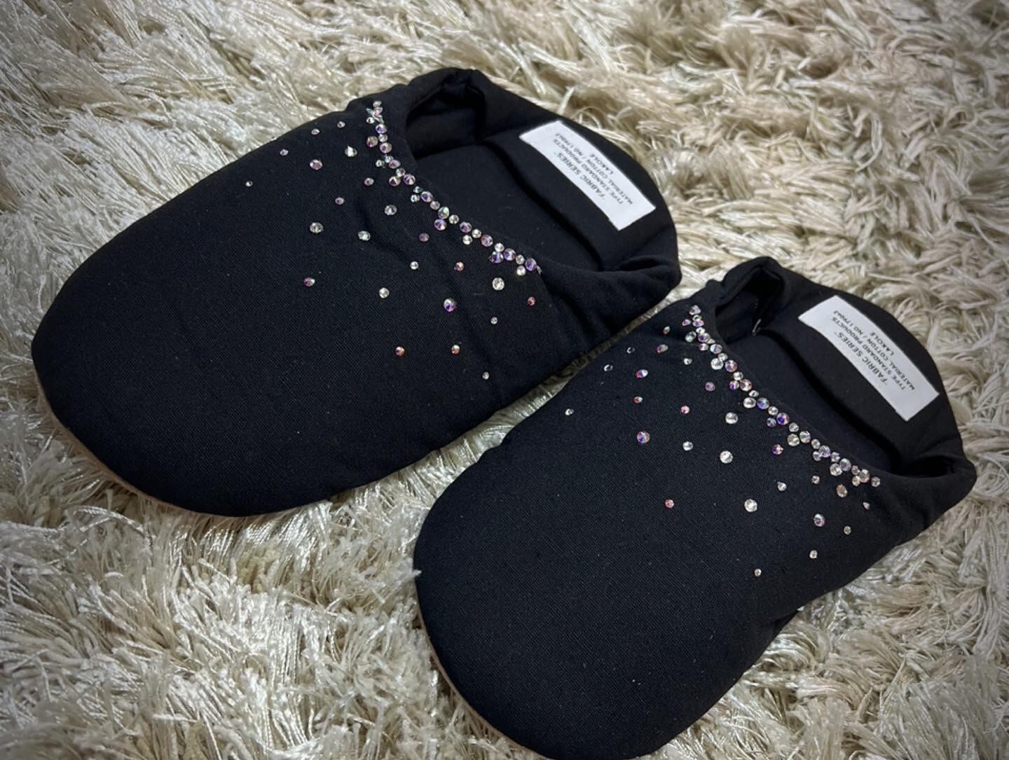 クリスタルとオーロラ(SWAROFSKIとクリスチャンディオールコラボ色)のバブルデコを散らしたルームシューズ。